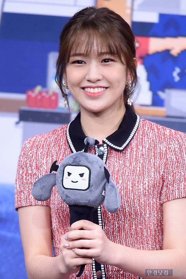 그룹 아이즈원 안유진이 29일 오후 서울 상암동 MBC신사옥에서 열린 새 예능 '마이 리틀 텔레비전V2(마리텔V2)'(연출 박진경, 권해봄) 제작발표회에 참석해 포토타임을 갖고 있다.