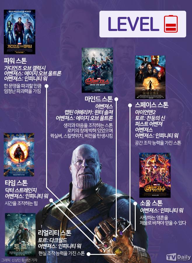 MCU 캐릭터에 어느 정도 알고 있다면 ‘어벤져스’ 시리즈를 중심으로 MCU의 굵직한 사건 위주로 작품을 보기를 추천한다. 특히 타노스가 인류의 절반을 날려버리는데 사용한 인피니티 스톤이 등장하는 작품 위주로 보길 권한다.