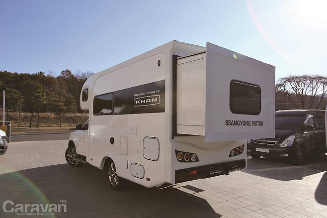 2019 렉스턴 칸은 외형적인 디자인을 더욱 고급스럽고 강렬하게 바꾸었고 프리미엄 인테리어를 완성시켰다. 대용량 데크와 편의사양이 추가되면서 최근 아웃도어, 레저 취향의 사용자들 타겟팅한 다양한 형태의 컨셉카를 선보이고 있다. 캠핑카의 증가세를 염두해 특장 업체에서 선보인 모델이 바로 렉스턴 칸 캠핑카이며 트럭 캠퍼 스타일이 아닌 일체형 모델로 첫 선을 보였다. 2열을 기본으로 하는 스포츠 모델에 컷 어웨이 방식으로 바디의 일부를 제거하고 벙커를 포함한 일체형 캠퍼를 결합하여 안정성과 편리함을 극대화하였다. 가장 눈여겨 볼만한 곳은 확장되는 후면부 침실이지만 약간의 수정과 보완은 필요해 보인다. 후륜에 가해지는 무게가 집중되지만 하체의 보강과 사용자의 옵션, 활용에 따라 업그레이드될 부분도 존재한다.