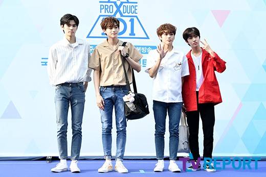 [TV리포트 = 문수지 기자] 연습생 강민희, 구정모, 송형준, 함원진이 30일 오전 인천광역시 부평구 인천삼산월드체육관에서 열린 Mnet '프로듀스 X 101' 콘셉트 평가 블루카펫 세리머니 출근길 포토타임에 참석해 포즈를 취하고 있다.