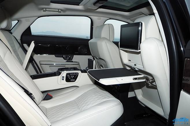 롱휠베이스 럭셔리 세단의 핵심이라 할 수 있는 뒷좌석 역시 호화로운 구성을 자랑한다. 전동조절 기능과 더불어 열선 및 통풍 기능이 적용되어 있으며, 우수한 착좌감을 지니고 있다. 뒷좌석 전용 엔터테인먼트 시스템은 물론, 정차 중 사용할 수 잇는 간이 테이블까지 마련되어 있다. 당연하게도, 실내 공간은 넉넉하게 배려되어 있다. 다만 낮고 매끄러운 루프 라인으로 인해, 체형에 따라서는 머리 공간이 약간은 타이트하게 느껴질 수 있다. 트렁크는 520리터의 넉넉한 용량을 자랑한다.