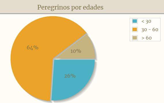 | [나이 분포, 출처: Oficina de Acogida al Peregrino] | ||