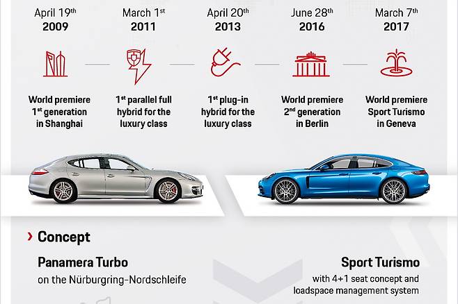 2011년 포르쉐는 파나메라와 함께 전동화 발판을 마련했다. 럭셔리 클래스 최초 병렬식 하이브리드 모델인 파나메라 S 하이브리드를 시작으로, 2년 후 포르쉐는 럭셔리 세그먼트의 세계 최초 플러그인 하이브리드 모델 파나메라 S E-하이브리드를 선보였다.