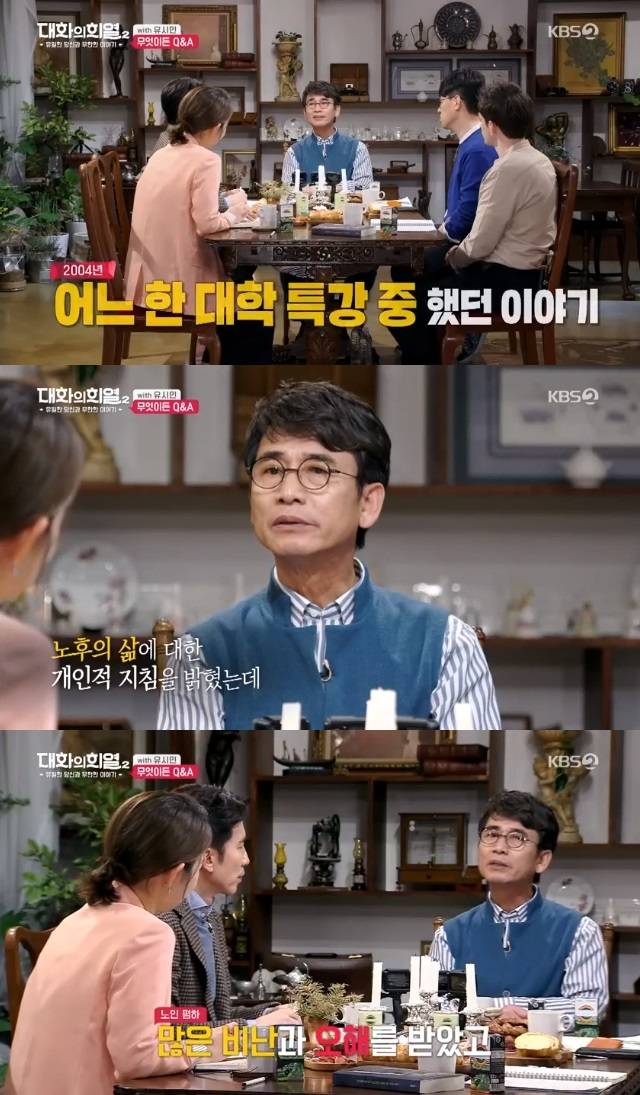 유시민은 “노인 폄하했다는 비난을 많이 받았고 스스로 생각해도 내가 그냥 그러고 살면 되는데 뭐하려 이야기했을까. 표현을 잘못한 거다”고 반성했다. (사진=KBS 2TV ‘대화의 희열2’ 캡처)
