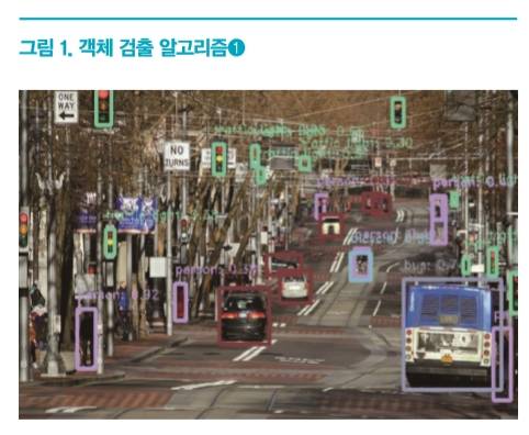 하지만, 여기서 우리는 딜레마에 빠지게 된다. 정확도와 속도 사이에는 Trade-off가 존재하기 때문이다. 알고리즘의 정확도를 향상시키기 위하여 알고리즘을 복잡하게 만들면 속도가 오래 걸리게 되고, 속도를 향상시키기 위해 알고리 즘을 간략화 시키면 성능이 떨어지게 된다. <그림 2>❶는 그 예시를 보여주는 그림이다. <그림 2>의 x축은 수행시간이고, y축은 정확도를 나타내는 방법 중 하나인 mean Average Precision (mAP)이다. 수행시간은 짧을수록 좋으므로, x축에서 왼쪽으로 갈수록 좋고, 성능은 y축에서 위로 갈수록 좋다. 왼쪽 위에 있을수록 속도가 빠르고 정확도가 높은 알고리즘이다. 현재까지도 계속해서 정확도와 성능 향상을 위한 많은 연구개발이 진행 중이다.