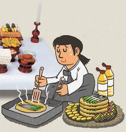 이를 해결할 방법은 없을까. 회사원 심모 씨(40)는 본가 부모님의 배려로 다툼을 줄일 수 있었다. 심 씨는 “할아버지가 돌아가신 뒤 부모님이 ‘연휴 때 내려오려면 힘드니 우리가 올라가겠다’며 설 전 주말에 다녀가신다”며 “엄마가 서운한 기색 없이 ‘차례 음식을 안 하니 나도 편하다’고 말해줘 고마웠다”고 말했다.