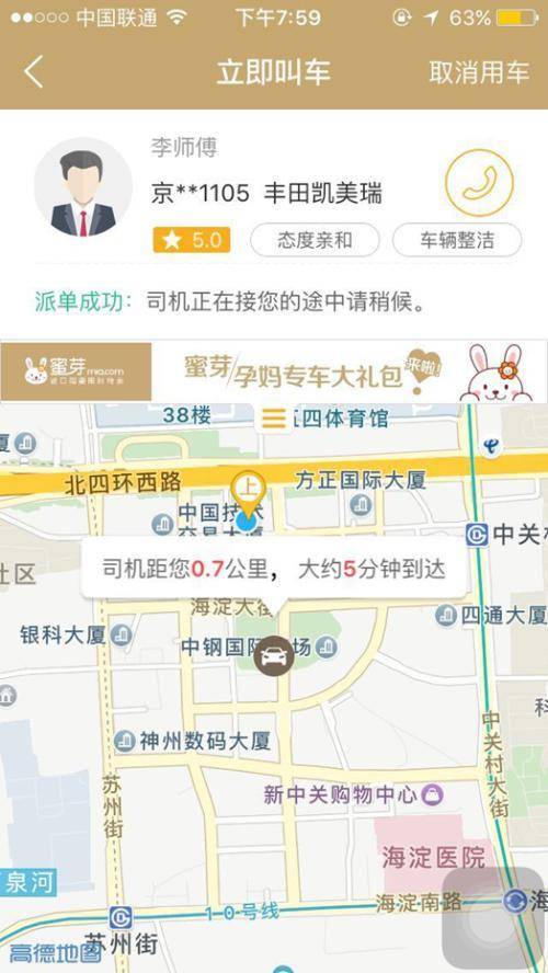 승∙하차 지점과 차량 종류까지 선택한 후, 호출을 누르면 배정된 기사의 정보와 평점, 그리고 차량 정보가 제공되면서 원하는 위치로 온다. 어플 상에는 예상도착 시간과 확정된 요금이 표시되고, 기사와 문자를 주고받으며 위치에 대한 정보나 기사의 도착시간을 물어볼 수 있다. 이동 후 하차하고 나면 다음 이용객을 위해 운전자에게 평점을 부여할 수도 있다.