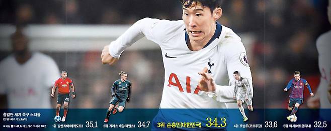 시속 34km 날쌘돌이 손흥민, 호날두·메시 제쳤다