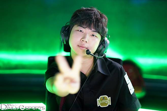 롤챔스 서머 공동 1위 킹존 드래곤X와 시즌 첫 승리가 필여한 진에어 그린윙스가 대결했다. 진에어 미드 라이너 '그레이스' 이찬주가 카메라를 향해 포즈를 취했다.