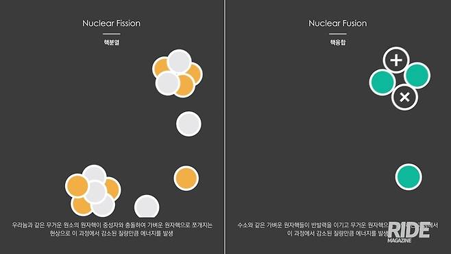 핵폭탄과 수소폭탄의 원리를 잘 모르면, 수소차 이름만 가지고도 폭탄이 될 수 있다고 오해할 수 있다. 우선 핵폭탄은 우라늄의 핵분열(核分裂)을 이용한 병기이다. 핵분열이란 원소 내부의 원자핵이 쪼개지면서 작은 원소로 변하는 것을 말한다. 일정 크기로 분리시켜놓은 우라늄 235 동위원소를 연속적으로 핵분열이 가능한 크기(임계질량)가 넘어가도록 결합시킨다. 그리고는 중성자를 충돌시킨다. 그러면 우라늄 235에서는 중성자가 2-3개 나오면서 다른 주변의 우라늄 235가 핵 분열하도록 한다.
