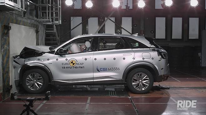 수소저장용기를 차량에 장착한 후 충돌 사고에서 얼마나 안전한지도 살핀다. 정면·후방·측면충돌을 시킨 후 충돌 후 프레임, 탱크, 고압부품류 파손과 수소 누출 여부를 확인한다. 특히 발화의 원인이 될 수 있는 고전원 장치의 안전성도 확인한다. 차량에서 수소가 누출되면 감지 센서와 차단 밸브 정상 작동 여부도 중요한 테스트 중 하나다. 수소저장용기 외에도 연료전지 스택과 이를 연결하는 배관 등은 주행중의 진동에 의해 틈새가 생기면서 쉽게 누출될 수 있기 때문이다. 배기구에서는 수소 기체의 배출 농도를 항상 확인하고, 누출이 확인되면 수소가 배출되는 농도를 연소되지 않는 수준으로 조절해 산화로 인한 폭발을 방지한다.