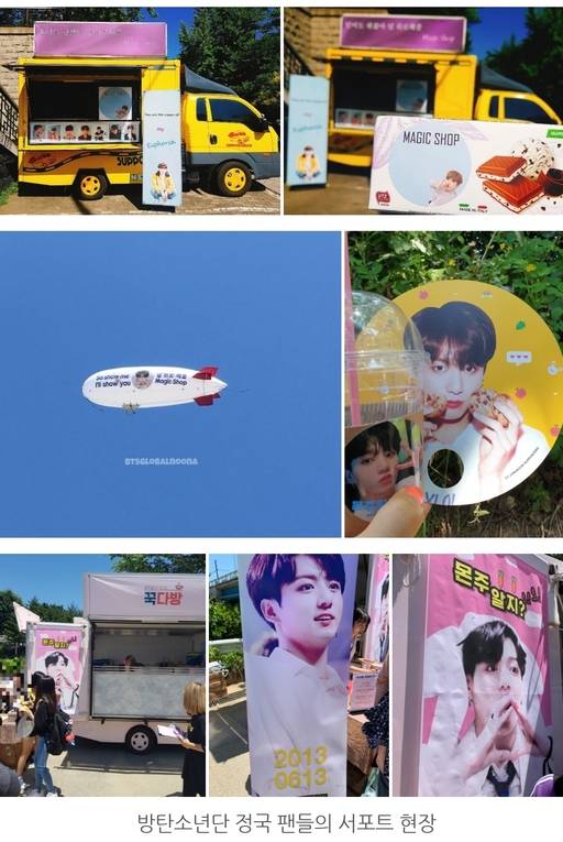 팬계정 '정국 서포터즈'와 '청년, 전정국'이 함께한 '꾹다방' 커피차, 러브시그널' 과 '정국 서포터즈'가 함께한 물티슈, 투명포카, 핀버튼, 부채 나눔도 성황리에 진행되며 행복한 추억을 선사했다.