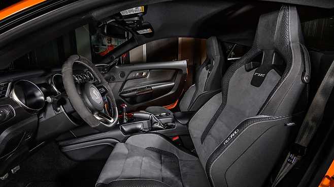또한 “편의장비 보강에도 중점을 두었다. 듀얼 존 온도조절 장치가 표준으로 들어갔고, B&O 오디오와 사각지대 모니터링, 레카로 시트 등이 자리했다. 그러나 일반 머스탱에 들어간 디지털 계기판은 빠지고 아날로그 방식이 들어가 조금 의아하다”고 전했다.