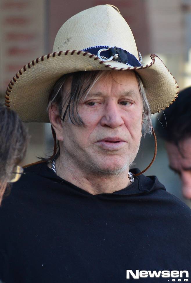 할리우드 배우 미키 루크는 3월 9일(현지시간) 미국 비버리힐즈 모처에서 모습을 드러냈다.