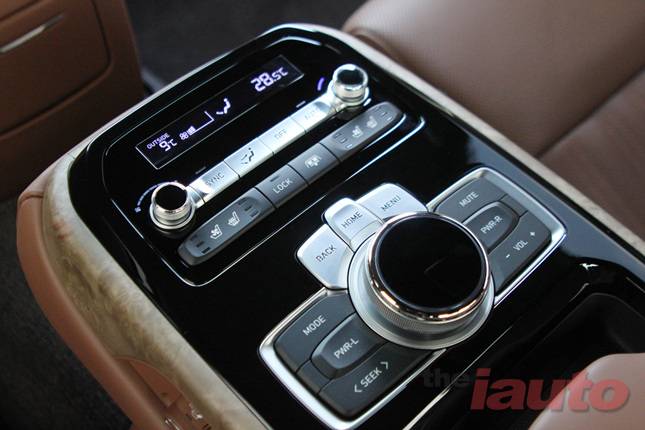 이와 함께 콘솔 위를 가죽으로 감싸고, 크롬 도금을 버튼에 적용해 고급스러운 이미지를 연출했으며, 이탈리아 다이나미카사의 고급 스웨이드로 시트 칼라와 맞춰 제작된 편안한 후석 목베개가 적용됐다. 또한, 제네시스 전용 카퍼 GUI(Graphic User Interface)를 최초 적용한 12.3인치 제네시스 커넥티드 내비게이션은 브랜드 컬러에 맞춘 고급스러운 카퍼 컬러가 채택됐고, 전후석 고객이 독립적으로 내비게이션 기능을 사용할 수 있다.