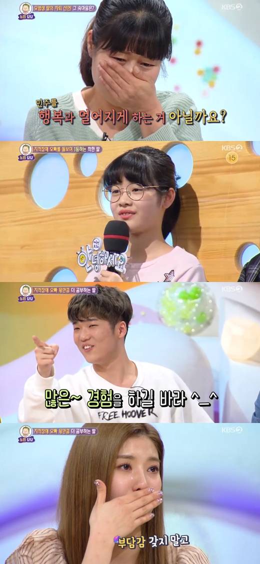 1일 밤 방송된 KBS 2TV '안녕하세요'에서는 1등 하던 딸이 중학교 자퇴 선언을 한 주인공이 등장했다.