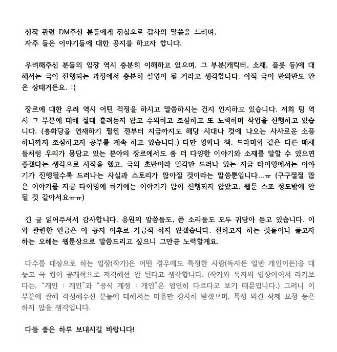 | ▲ '홍화당'의 작가팀인 팀 조무래김은 4일 트위터에 "영화나 책, 드라마와 같은 다른 매체들처럼 우리가 몸담고 있는 분야의 장르에서도 좀 더 다양한 이야기와 소재를 말할 수 있으면 좋겠다는 생각으로 시작했다"고 밝혔다. |