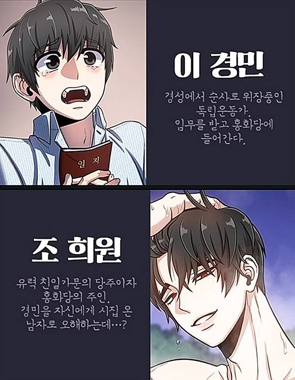 | ▲ 웹툰 '홍화당'은 독립운동가와 친일파 당주의 동성애를 그리고 있다. |