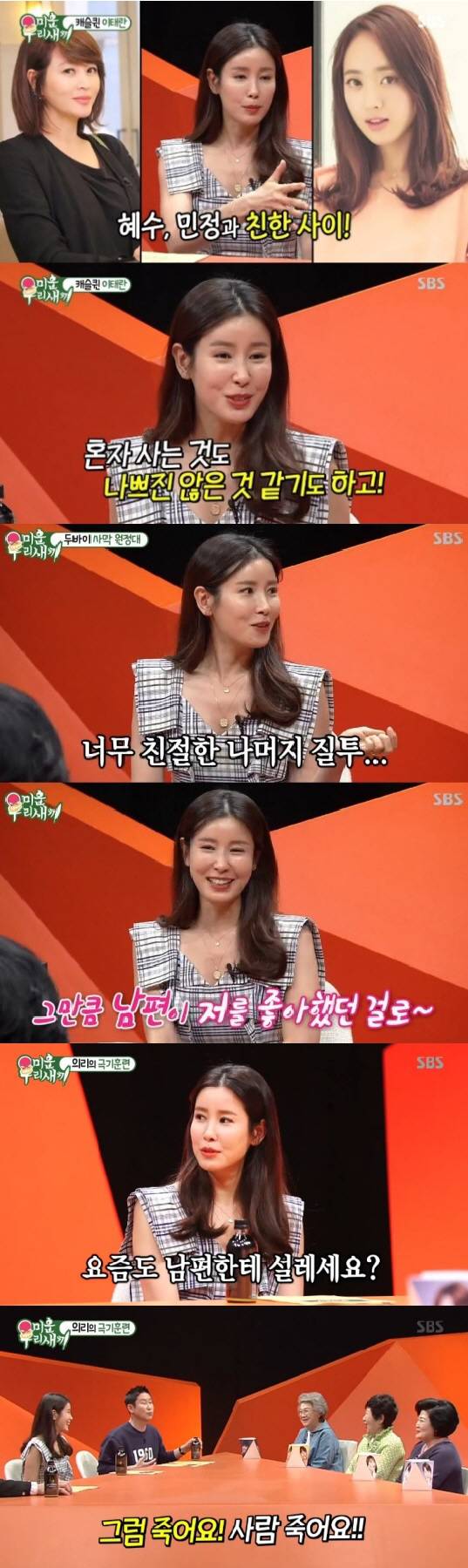 14일 방송된 SBS 예능 프로그램 '미운우리새끼'에서는 지난 주에서 이어서 배우 이태란이 스페셜MC로 출연했다.