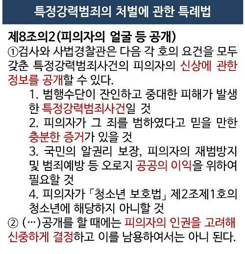 다만, 살인, 강간 등 강력범죄의 피의자에 대해선 신상을 공개하는 것이 법적으로 허용돼 있다.