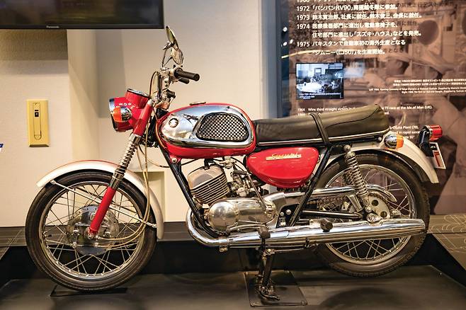 스즈키의 본사는 일본 하마마츠에 있다. 지금은 바이크나 자동차가 먼저 떠오르지만 그 시작은 방직기다. 농부의 집안에서 태어난 창업주 스즈키 미치오는 어머니가 수작업으로 고생스럽게 베틀을 짜는 것을 안타깝게 여기고 이것을 개선한 방법을 찾았다. 이에 페달로 구동되는 효율성 높은 베틀을 만들었고 이게 히트를 쳤다. 이 경험으로 스‘ 즈키 직조기’ 를 설립하고 제조업 사업을 시작했다.