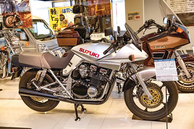GSX-1100S KATANA (1981년) : 유럽시장 공략을 위해 스즈키 독일 본사 주도하에 개발된 모델. 특유의 디자인과 스펙 그리고 강렬한 세계관으로 세계적인 인기를 끌었다. 2000년까지 업데이트를 거치며 시리즈를 이어오다가 파이널에디션을 끝으로 단종되었다. 하지만 2018년 독일 쾰른에서 스즈키는 카타나를 부활시켜 세계적인 집중을 받 았다. 국내에서는 2019년 5월 올 뉴 카타나가 정식으로 론칭해 국내 라이더들을 만나고 있다.