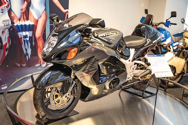 GSX1300R 하야부사(1999년) : 1999년에 300km/h의 영역을 무너뜨린 스즈키의 플래그십 최고속 투어러. 송골매를 뜻하는 한자 데칼을 강조하며 강렬한 세계관을 구축했다. 유선형의 풀 페어링은 극도의 에어로 다이내믹을 연출했다.