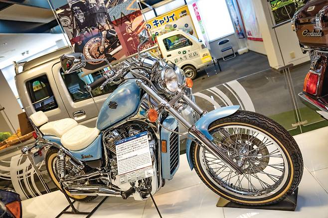 VS750 인트루더 엑스트라 리미티드(1986년) : 스즈키가 해석한 아메리칸 크루저. 수랭 V형 2기통 엔진을 얹 고 크롬 파츠를 적극적으로 사용해 화려한 멋을 강조했다.