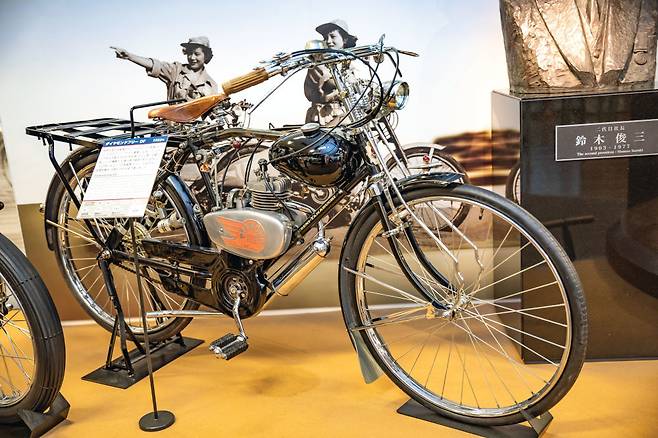 파워프리 E2 (1952년) : 파워프리는 스즈키의 최초의 모빌리티다. 유지 보수가 쉽게 설계되었다. 기존 자전거의 프레임에 클립으로 고정된 36cc 2행정 엔진을 얹었다. 더블 스프로켓 기어 시스템을 독창적으로 적용해 엔진과 페달을 별도로 구동할 수 있다. 사진은 1952년 파워프리 E2인데 1954년에 E3으로 발전된다.