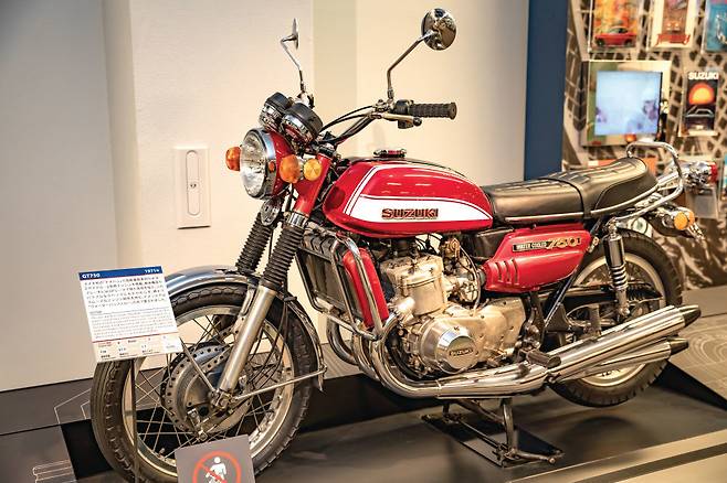 GT750(1971년) : 스즈키 최초의 나나한. 일본 내 최초의 수랭 2스트로크 3실린더 엔진을 조합했다. 최대 67마력의 강력한 출력을 내고도 조용한 소리와 부드러운 엔진 필링이 유명했다. 크고 묵직한 크기와 파워풀한 출력으로 미국 시장에서 물소(Water Buffalo)라는 별명을 얻고 유명해졌다.