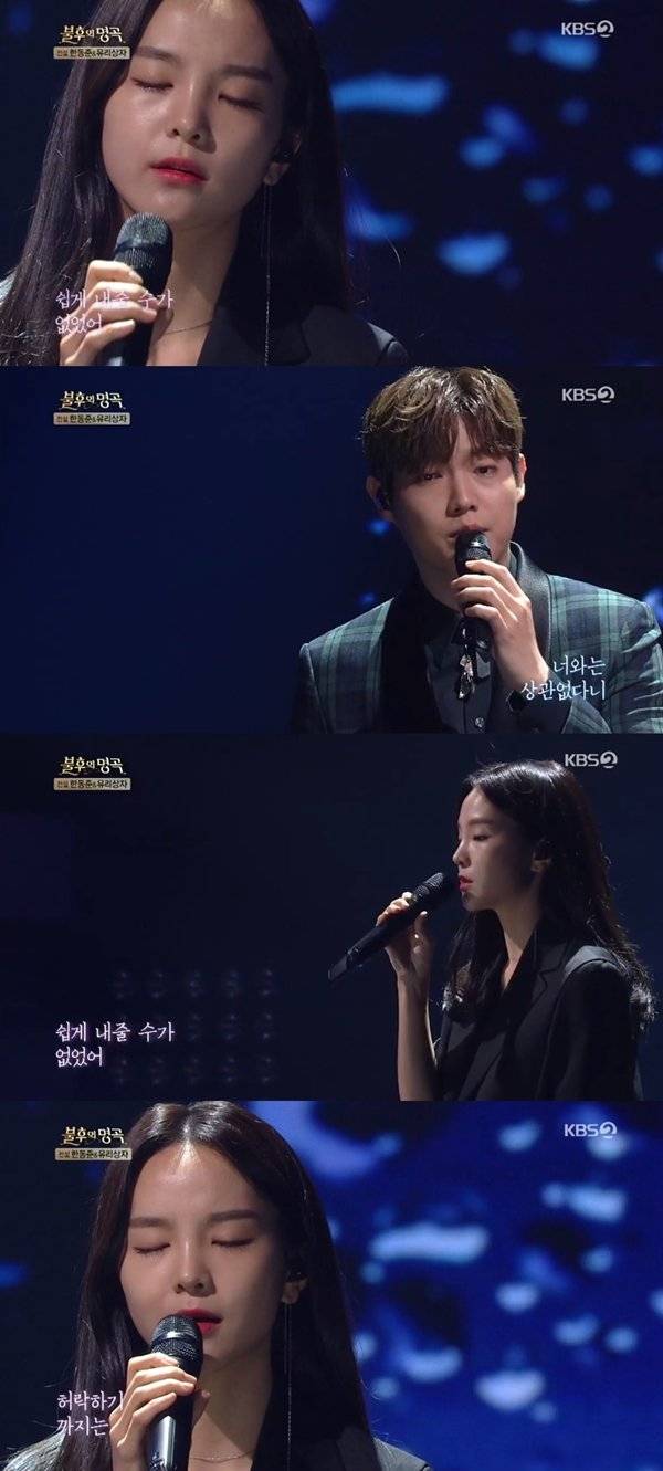 두 사람은 이날(11일) 오후 방송된 KBS2 '불후의 명곡' 한동준·유리상자 편에 출연해 유리상자의 '순애보' 컬래버 무대를 선보였다. 이 곡은 유리상자가 "팀의 색깔을 가장 잘 표현한 곡"이라고 설명한 바 있다. 손태진의 웅장하고 감미로운 보이스와 송소희의 청아하면서도 구슬픈 보이스가 애절한 곡조 속에 녹아들었다. 일부 관객들은 두 사람의 무대에 눈물을 훔치기도. 결과는 아쉽게 몽니에 패했지만 청중의 마음에 깊은 여운을 남겼다.