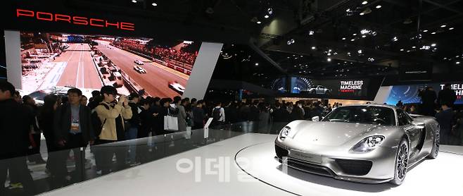 [이데일리 방인권 기자] 포르쉐코리아가 28일 오전 경기도 고양시 일산서구 킨텍스에서 열린 '2019 서울모터쇼'에서 '918 스파이더'를 선보이고 있다.