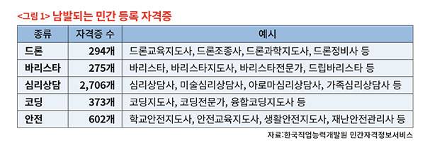 지난해 4월 국무조정실과 교육부는 민간 등록 자격증 신설 자격 요건을 엄격하게 규제하겠다고 밝혔다. 정책이 발표되고 1년이 지난 현재 상황은 어떨까. 결과적으로 정책 발표 이후 민간 등록 자격증은 오히려 늘어났다.