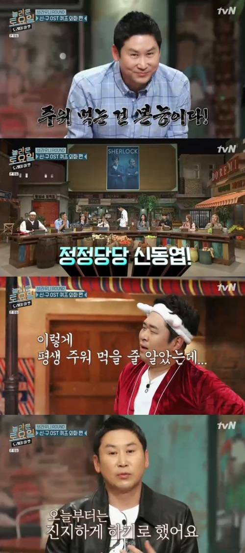 간식 퀴즈에서 그동안 주워 먹기의 달인으로 유명했던 신동엽이 실력을 발휘했다. 방송 시작에 앞서 방송에 잡히지 않는 자신이 달라진 모습을 보일 것이라고 다짐했던 신동엽이 가장 먼저 퀴즈를 맞췄다.