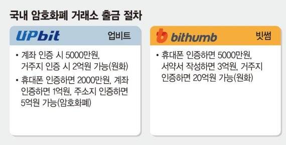 ■국내 대표 거래소들, 원화 출금 규정 '제각각'