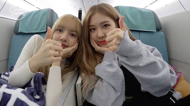 한편 막내라인 로제와 리사의 기내 속 모습도 담겼다.