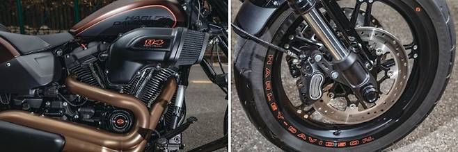 FXDR은 제원 상 좌측과 우측의 뱅킹 한계가 32.8도, 32.6도로 꽤 높은 선회 한계를 가지고 있다. 차고와 풋패그를 높이고 프라이머리 케이스까지 얇게 만들어낸 덕분이다. 덕분에 코너가 연속되는 구간에서도 재미를 잃지 않는다. 밀워키 에이트 114엔진이기 때문에 1,868cc의 배기량이 뿜어내는 힘이 그대로 노면에 전달된다. 게다가 그만큼에 준하다고 할 수 있을 만큼의 강력한 브레이크 시스템으로 무장하고 있다. 프런트에 300mm 더블 디스크와 4피스톤 캘리퍼가 조합되고 리어에 292mm 싱글 디스크와 2피스톤 캘리퍼가 제동을 책임진다. 덕분에 가속과 감속을 확실하게 가져갈 수 있고 선회를 부드럽게 들어갈 수 있다.