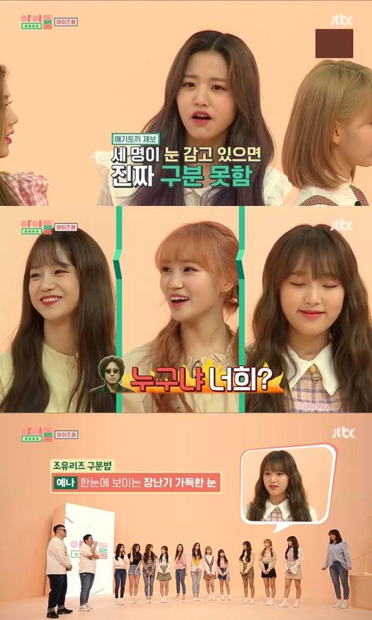 그룹 아이즈원 멤버들이 조유리, 최예나, 김채원이 닮은꼴 외모를 자랑했다.