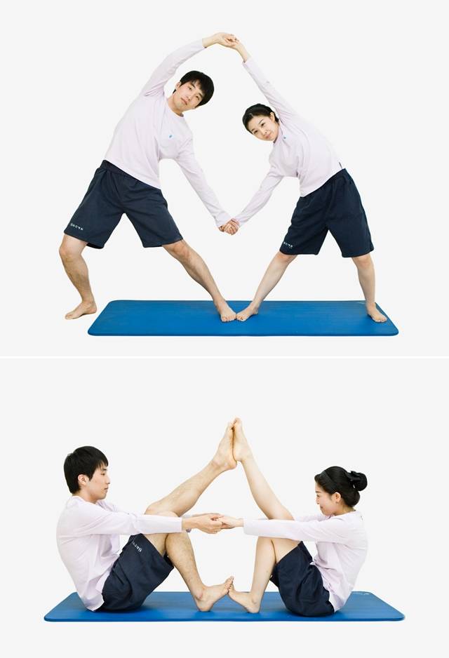 나란히 서서 서로의 안쪽에 있는 발을 붙이고 서로의 두 팔을 각각 잡는다. 이때 바깥쪽 발은 약간 구부려 10초간 유지하며 반복한다. 마주 보고 앉아 손을 잡고, 왼쪽 발끝을 대어 왼쪽 무릎은 세우고, 오른쪽 다리는 쭉 뻗어 발바닥을 맞댄다. 다리 근육에 힘을 주어 가능한 높이 들어 15~20초 유지한다.