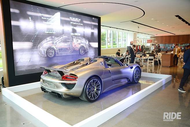 2층과 1층에는 911 카레라 4S, 카이엔 등 포르쉐의 인기 차종이 전시되어 있었다. 이날 행사 때문에 전시가 되지 않았지만 1층 헤리티지 디지털 월 앞에는 포르쉐 클래식 차량을 전시한다. 또한 지난 서울모터쇼에서 공개했던 시스템출력 887마력의 하이브리드 슈퍼카 - 918 스파이더도 전시되어 포르쉐 마니아들의 관심을 끌어당긴다. 포르쉐 스튜디오의 운영은 국내 딜러사인 SSCL(슈트르가르트스포츠카)에서 맡는다. 운영 관계자는 ‘포르쉐의 열정을 고객들과 공유할 수 있는 곳으로 만들겠다’고 밝혀 기대를 모았다.