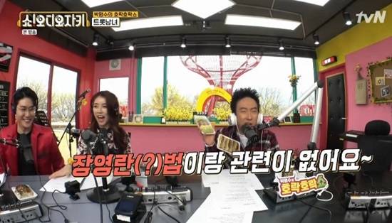제작진이 “김영란이다”고 정정하자 박명수는 “장영란 아니고 김영란법이다. 내가 김영란 보다 장영란이랑 친해서 그랬다”고 변명해 웃음을 자아냈다. (사진=tvN ‘쇼오디오자키’ 캡처)