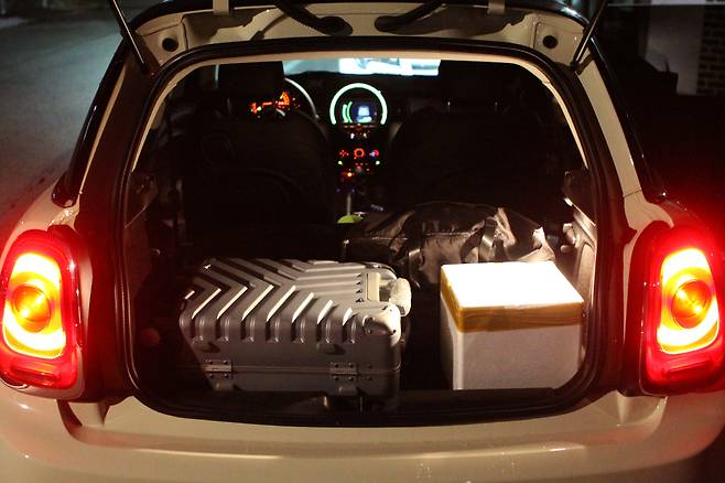 평소 사람 태울 일이 거의 없습니다. 그래서 제 차의 도어는 세 개로 충분합니다. 대신 트렁크는 넓길 바랐습니다. 고향 다녀오면 짐이 한 가득이거든요. 이 관점에서 미니 쿠퍼는 합격입니다. 의외로 트렁크가 여유롭습니다. 뒷자리 시트를 접지 않아도 작은 캐리어 하나쯤은 거뜬히 들어갑니다. 트렁크 아래에 수납공간이 따로 마련되어 있어 유용하죠. 짐이 많다면 폴딩하면 됩니다. 40인치 대형 캐리어도 두 개까지 실을 수 있어요. 다만 이건 혼자 탈 때에만 해당하는 장점입니다. 짐을 정말 많이 실을 때에는 조수석 시트를 뒤로 젖히지 못한다는 게 치명적입니다.