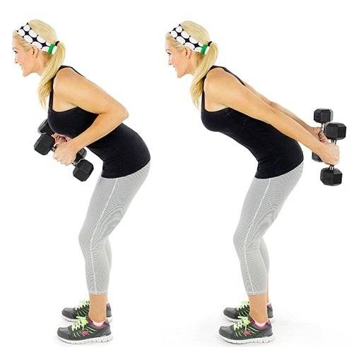 양발을 어깨 너비로 벌리고 상체를 앞으로 약간 숙인 상태에서 덤벨을 들고 팔을 ㄴ자로 당겼다 폈다를 반복하는 운동입니다. 삼두근을 강화해 출렁임을 없애주죠. 이때 허리와 어깨를 구부리지 말고 일자로 펴야 운동 효과가 납니다. 한 번에 20번씩 3세트 합니다.