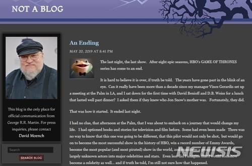드라마의 원작소설 '얼음과 불의 노래'의 작가 조지 R R 마틴(71)은 자신의 블로그에 '결말'이란 제목의 글을 올렸다.