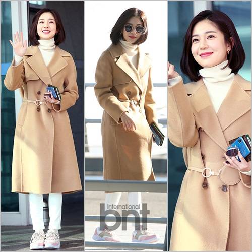 화보 촬영차 홍콩으로 출국하기 위해 공항에 등장한 백진희는 보온성과 실용성을 두루 겸비한 카멜 코트 스타일링을 선보였다.