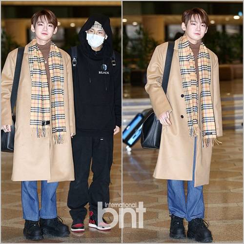 Mnet ‘프로듀스101 시즌 2’종영 후 팬들의 응원과 지지로 김상균과 함께 2인조 보이그룹 JBJ95로 정식 데뷔한 타카다 켄타 역시 카멜 코트로 공항 패션을 선보였다. 무대 위와는 전혀 다른 사복 패션을 선보인 그는 클래식하면서도 위트있는 코트룩을 완성했다.