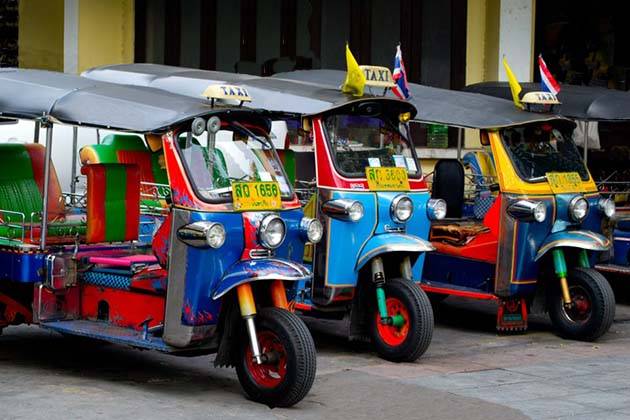 후진국일수록 고급 안락형 4룬 택시 보다 오토바이를 개조한 3륜의 간편한 택시나 자전거를 사용한 인력거 택시들이 많다. 태국 대도시와 수도 방콕에는 3륜 스쿠터 택시인 툭툭이(tuk tuk) 천국이다. 특히 방콕에서 툭툭이를 타는 것은 절대 필요하다. 태국의 툭툭이택시는 다양한 모양과 색상이다. 툭툭이는 편안한 승차감을 원하면 오산이다. 교통 혼잡이 심각한 방콕에서 매우 인기가 있는 이 흥미로운 3륜 수쿠터 택시는 빠르고 저렴한 교통수단이다. 방콕은 한 때 넘쳐나는 고물 툭툭이 택시들이 매연 공해 최악의 도시로 만들어 이 툭이들을 수장 시키려는 정책도 세운적이 있었으나 서민의 생계를 위협한다는 거센 반대로 손을 들고 말았다.