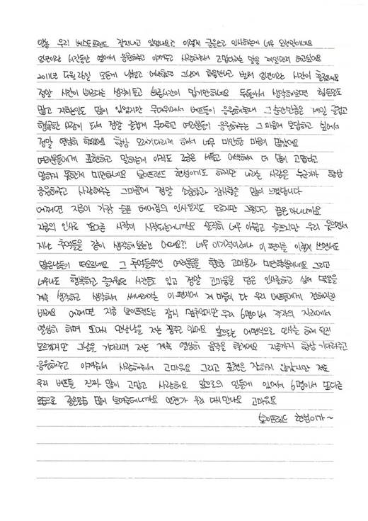 17일 보이프렌드 현성은 트위터에 자필 편지를 올렸다.