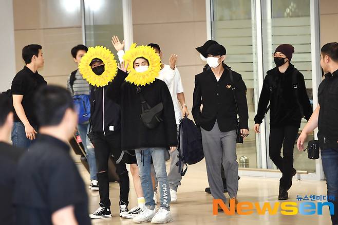 방탄소년단(BTS) 멤버 RM 슈가, 진, 제이홉, 지민, 뷔, 정국이 6월 10일 오후 인천 중구 운서동 인천국제공항을 통해 프랑스 파리 스타드 드 프랑스(Stade de France)에서 열린 월드투어 ’LOVE YOURSELF: SPEAK YOURSELF’ 일정을 마치고 입국했다.