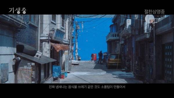 이렇듯 두 집 사이의 대조와 각 공간의 리얼리티, 그리고 영화의 메시지를 내포한 다수의 디테일을 통해 완성된 '기생충'의 공간들은 동시대에 살고 있으나 만날 일도 엮일 일도 없는 극과 극 가족의 삶의 배경을 설득력 있게 보여준다.